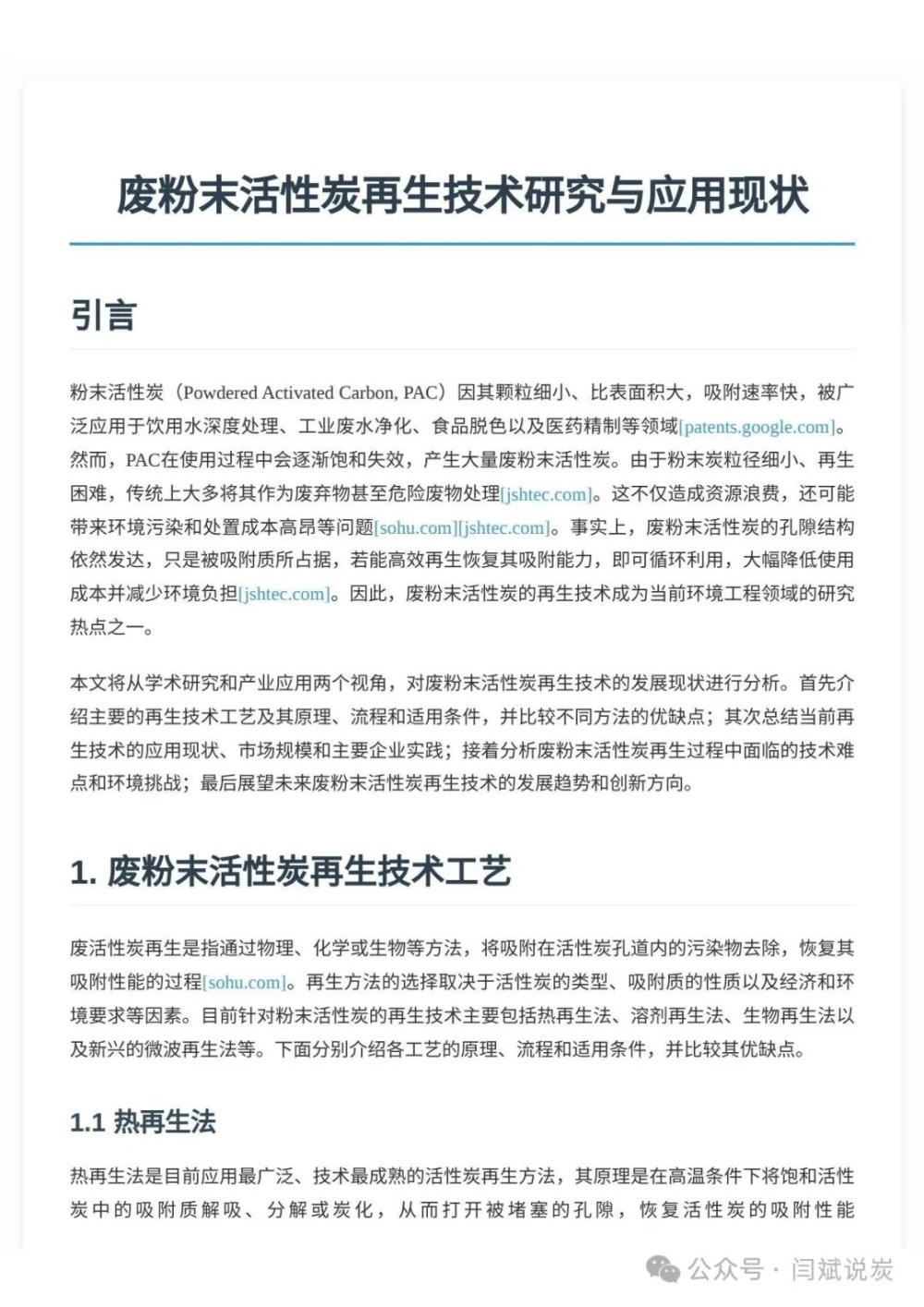 废粉末活性炭再生技术