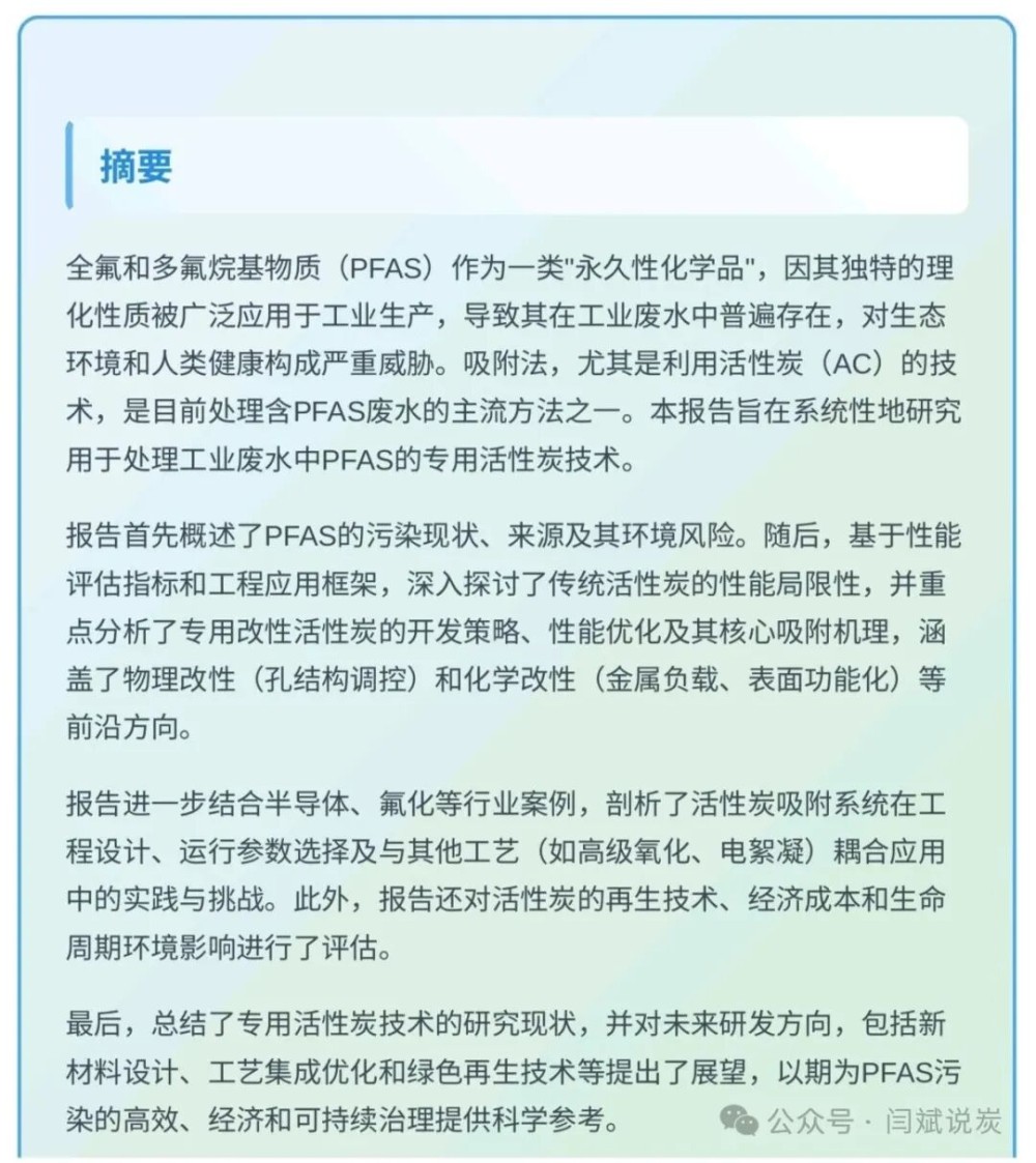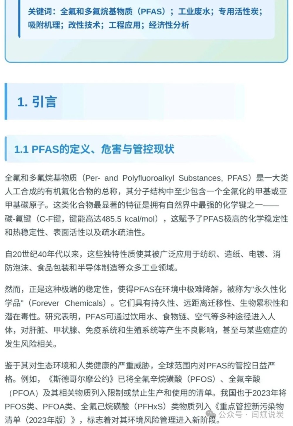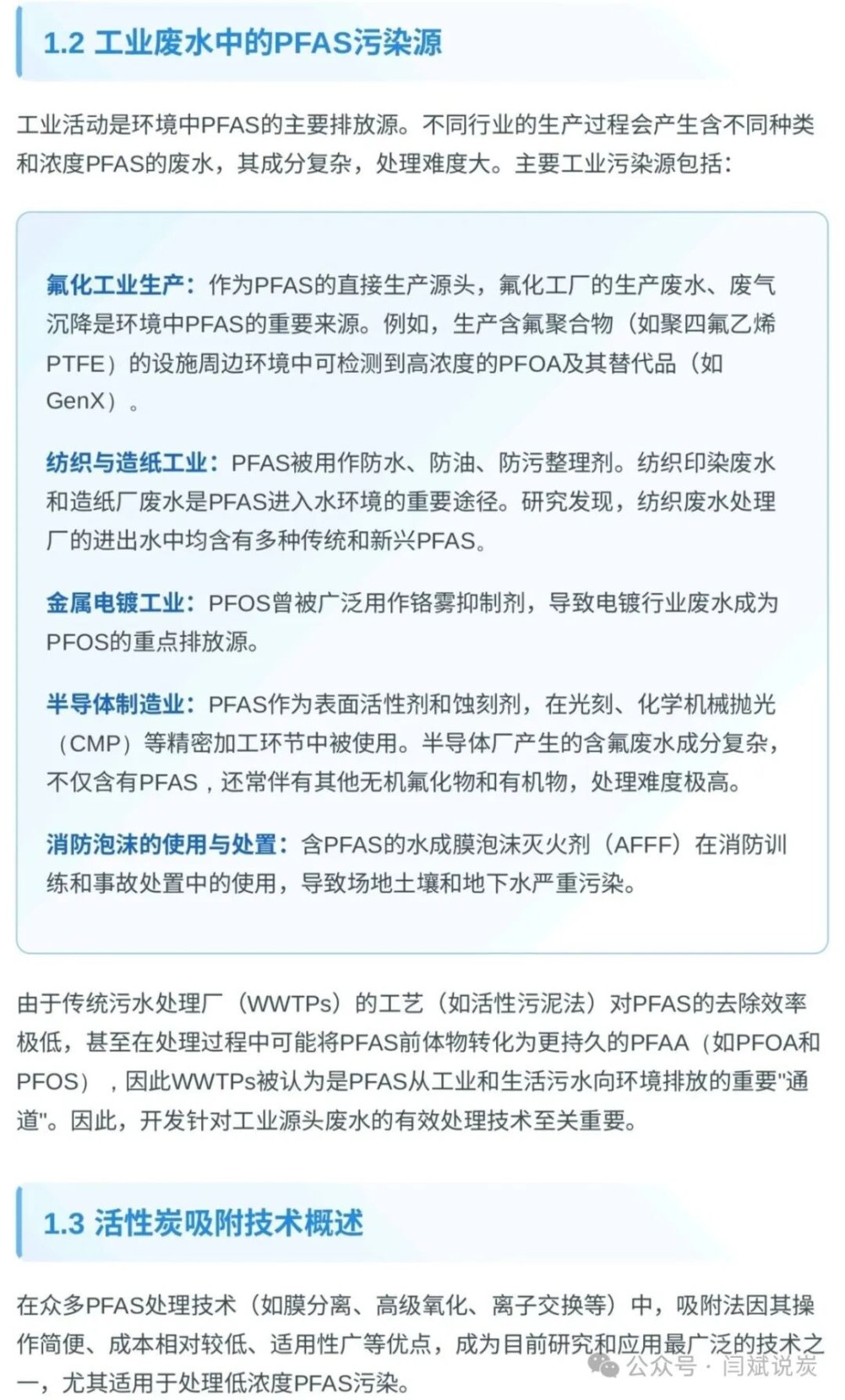 工业废水中全氟化合物(PFAS)处理专用活性炭技术研究报告