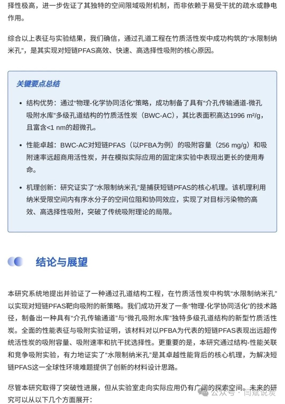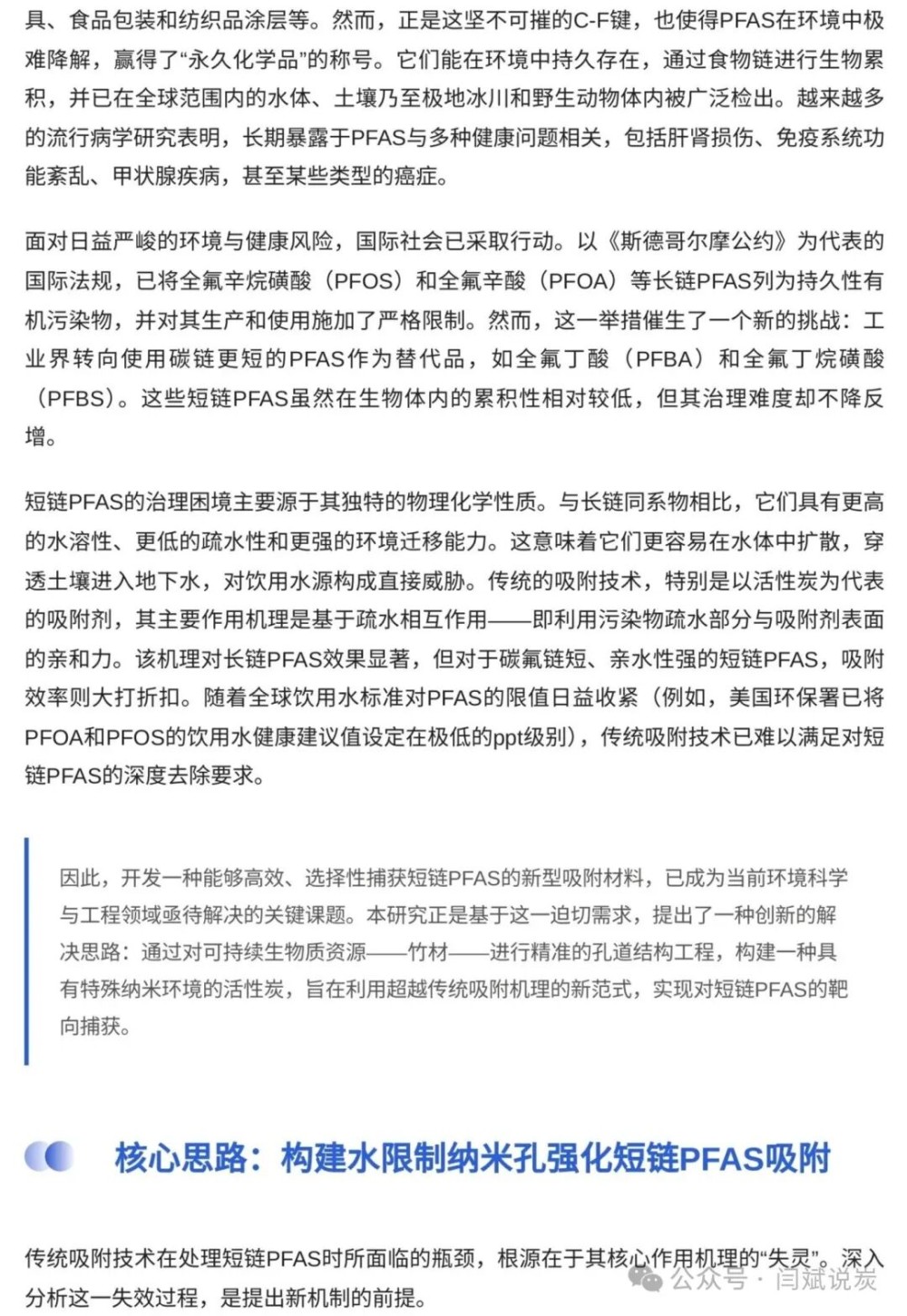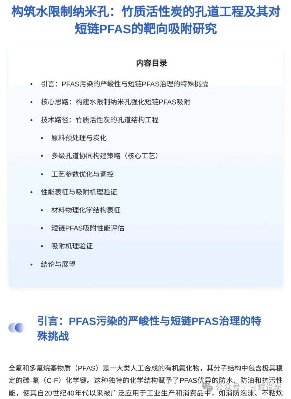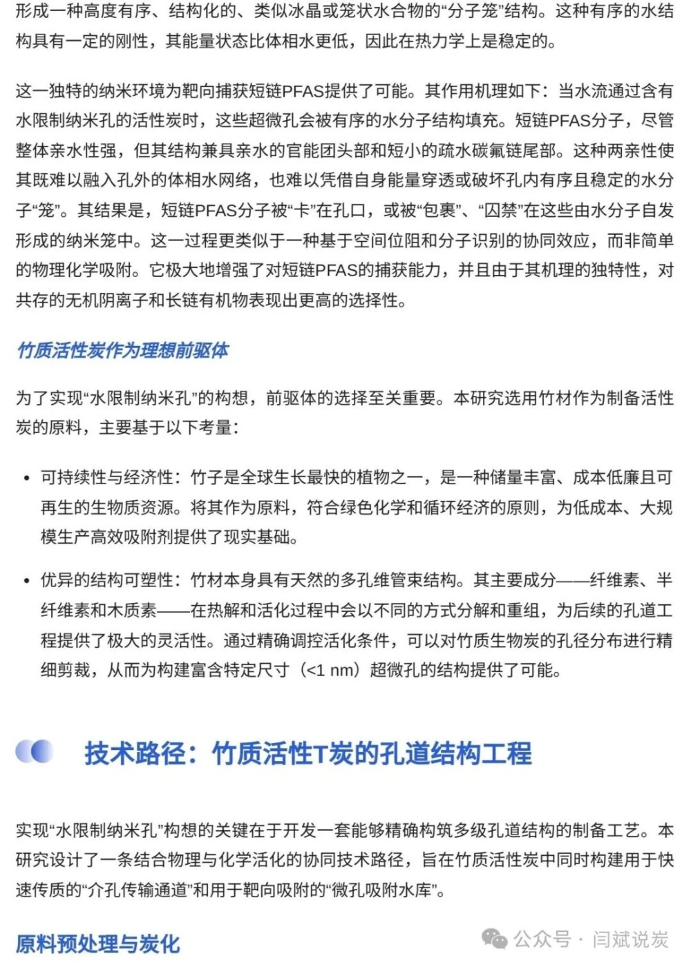 构筑水限制纳米孔:竹质活性炭的孔道工程及其对短链PFAS的靶向吸附研究