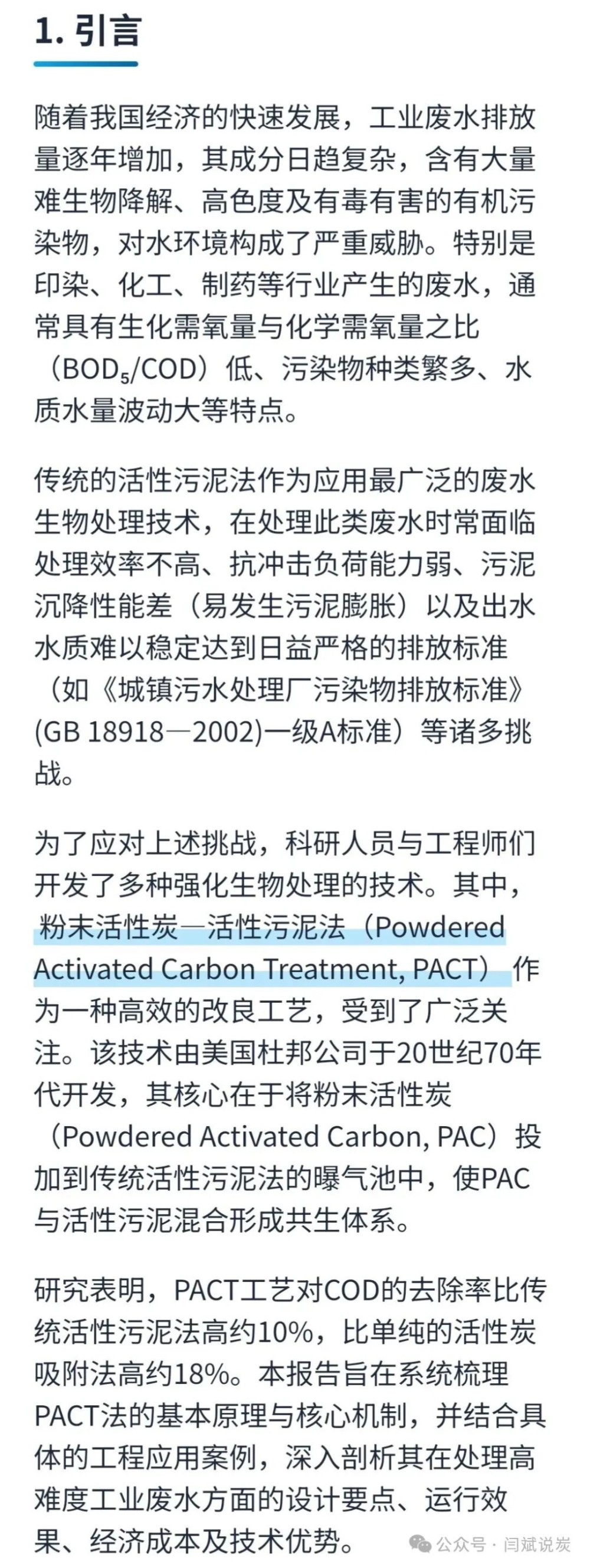 粉末活性炭—活性污泥(PACT)法研究报告