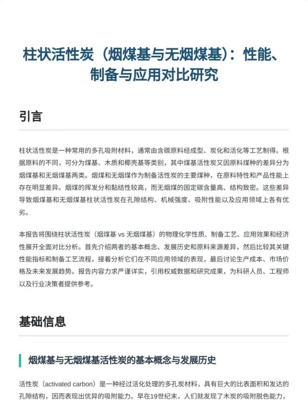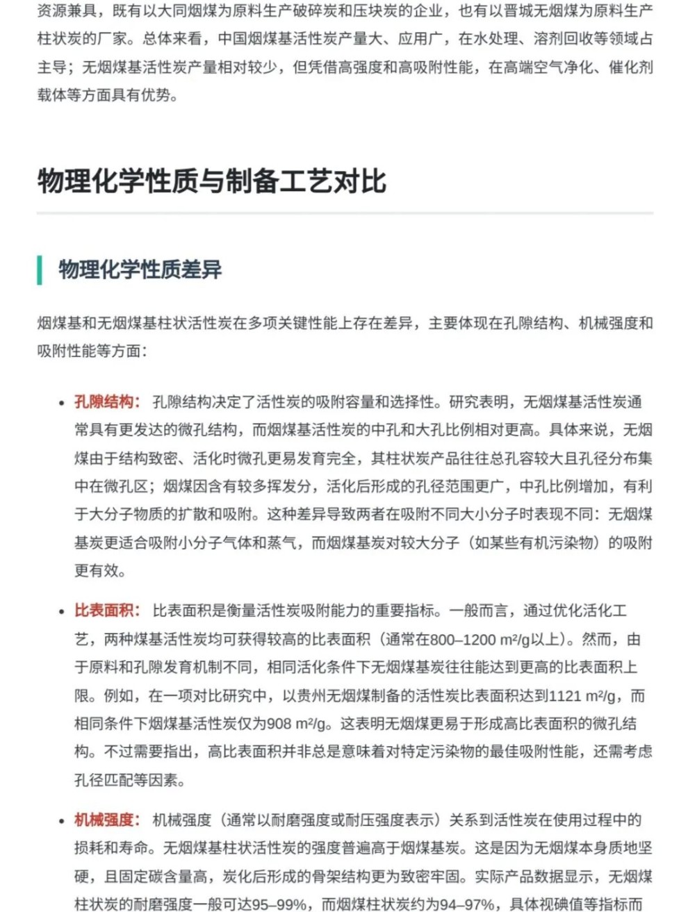 柱状活性炭(烟煤基与无烟煤基):性能、制备与应用对比研究