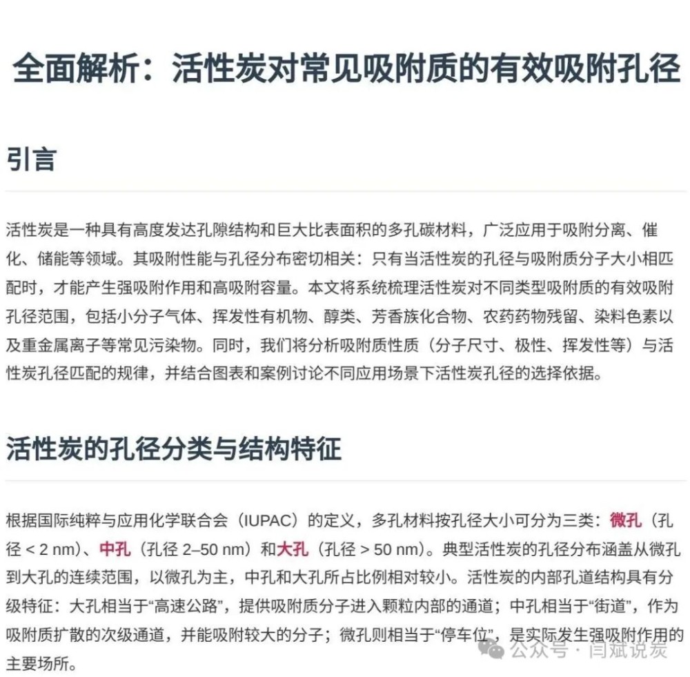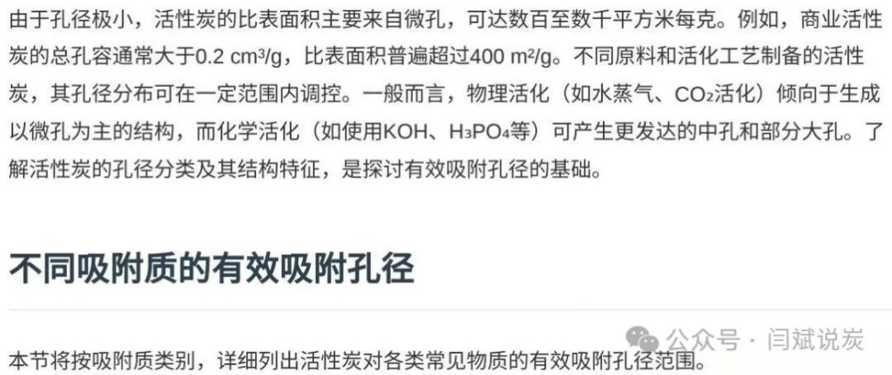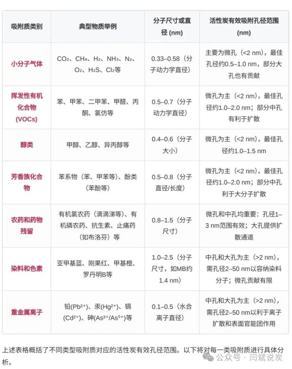 全⾯解析:活性炭对常⻅吸附质的有效吸附孔径