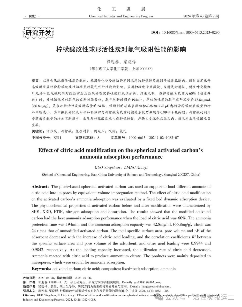 柠檬酸改性活性炭对氨气吸附性能的影响研究