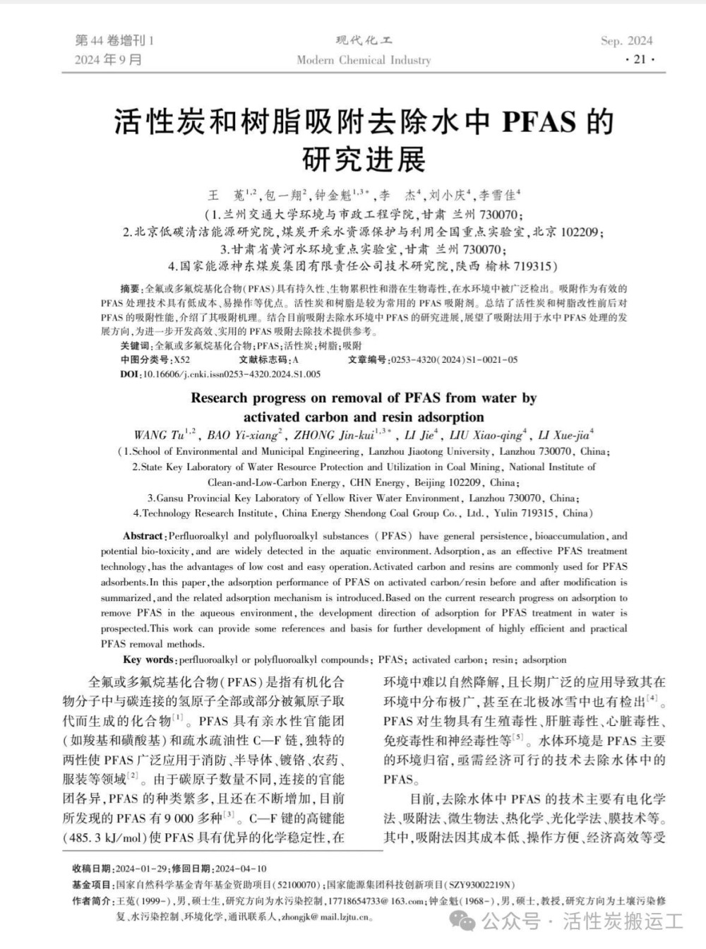 活性炭和树脂吸附去除水中PFAS的研究进展