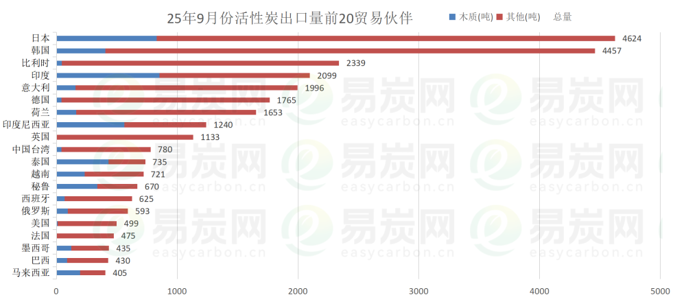 9月份出口量国家/地区前五名分别为日本、韩国、比利时、印度、意大利,前五名出口数量占比约 46%;出口省市前五名为山西省、天津市、福建省、河南省、上海市,前五名出口数量占比约 68%。